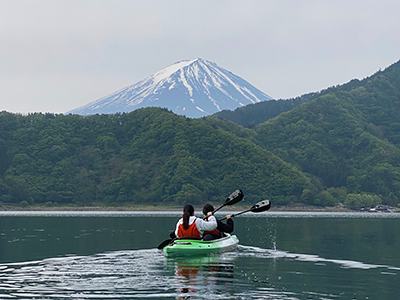 Enjoy an early morning kayaking experience on Lake Kawaguchiko with Mt. Fuji as your backdrop. Depart during the calmest hours of the day and glide gently across the still water, guided by a local expert. When weather conditions are favorable, you may even witness the rare sight of “upside-down Mt. Fuji” reflected on the lake’s surface. During the tour, a traditional Japanese-style breakfast is served on the lake, allowing you to savor a quiet morning surrounded by nature. This experience is available exclusively as an optional add-on activity for guests staying at THE LAKE Kawaguchiko Kurashi.