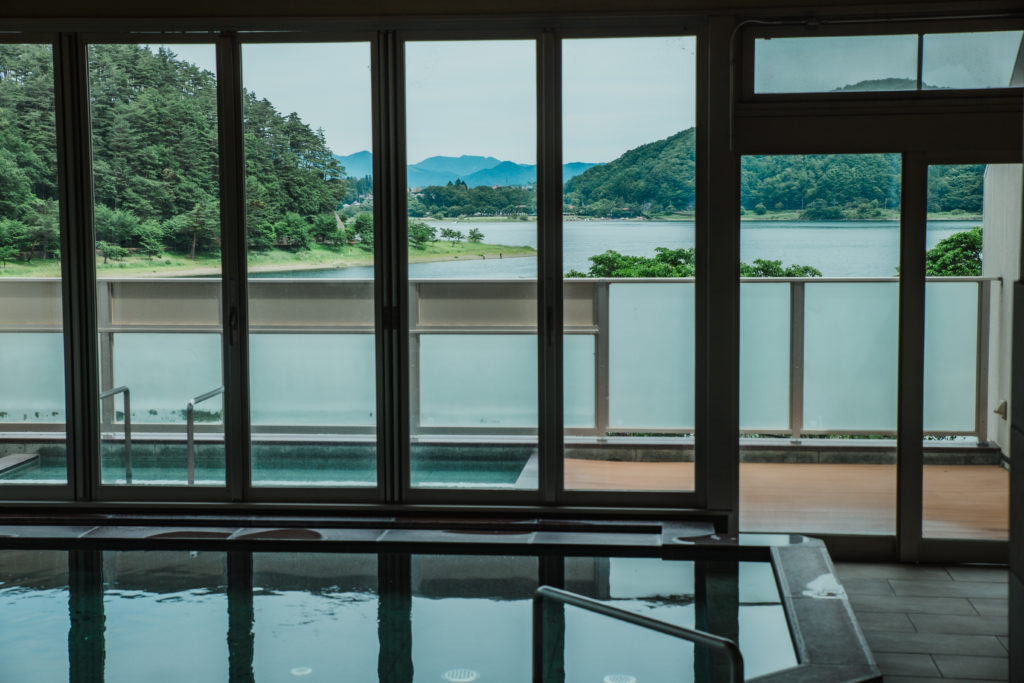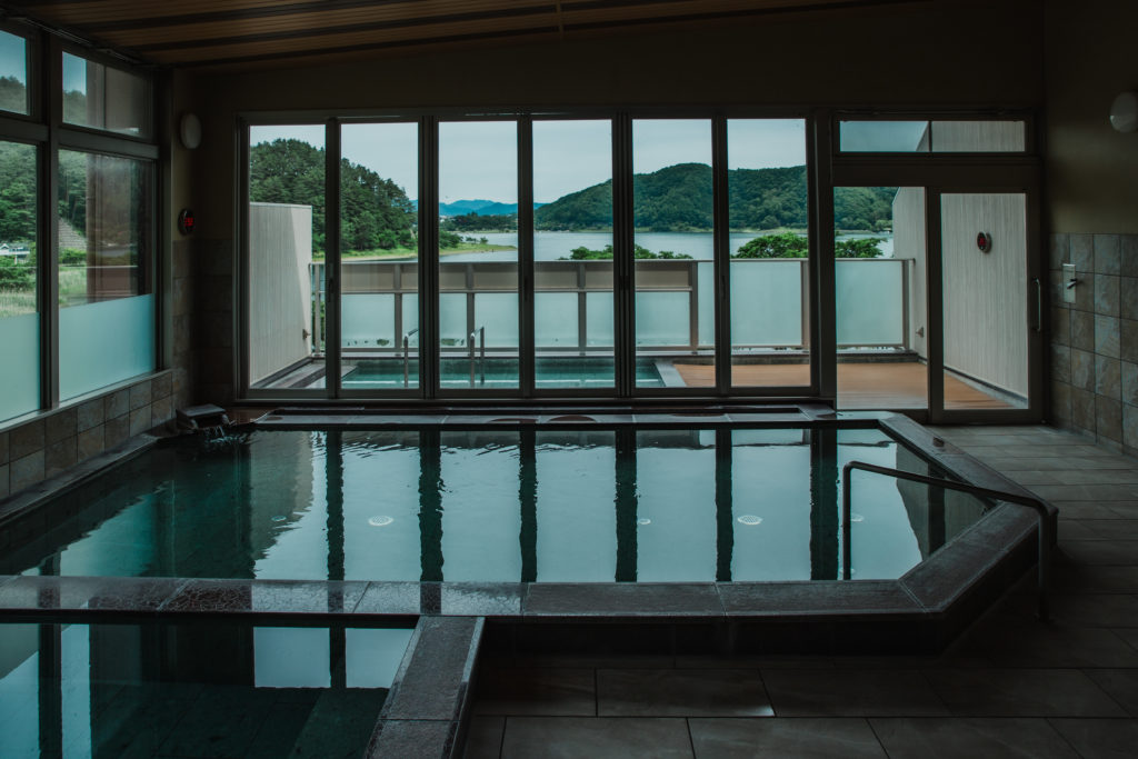 The hot spring at Ashiwada Hotel offers a relaxing and comfortable atmosphere, where you can unwind while taking in the natural beauty of Lake Kawaguchi.