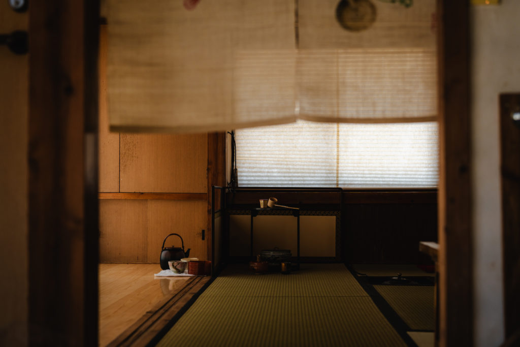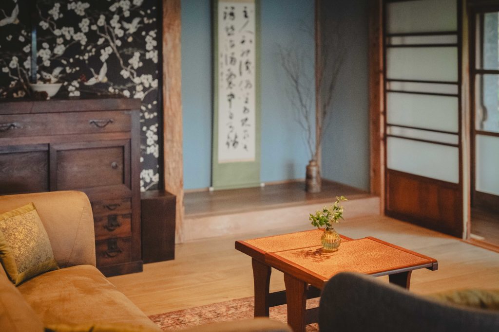 The Japanese-style tatami room, located on the first floor, is a serene and authentic space featuring a traditional chado tea-ceremony hearth (ro). Soft natural light filters gently through shoji screens, while the calm presence unique to a historic kominka creates an atmosphere that naturally soothes the mind.