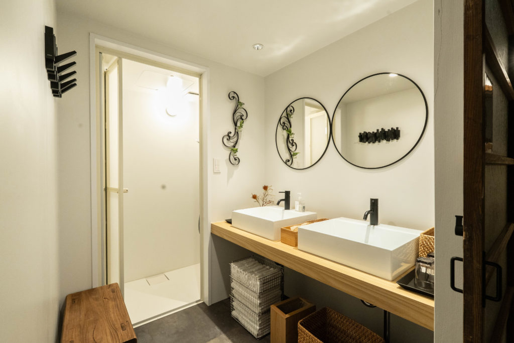 On the first floor, guests will find a shower room (without a bathtub) and a dedicated vanity area. Designed with simplicity and cleanliness in mind, this space is ideal for daily grooming or refreshing yourself after light activities.